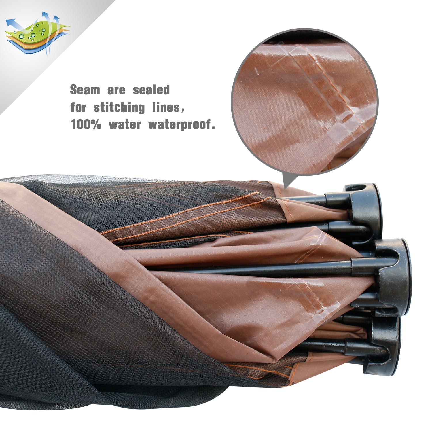 - [ Weather-proof Fabric ] The screened gazebo made with durable 210D Oxford polyester to block UV rays and light rain. The rooftop keep you dry and cool inside; High-quality black no-see-um mesh provides better visibility, ensures air circulation, and also keeps mosquito and other bugs out.