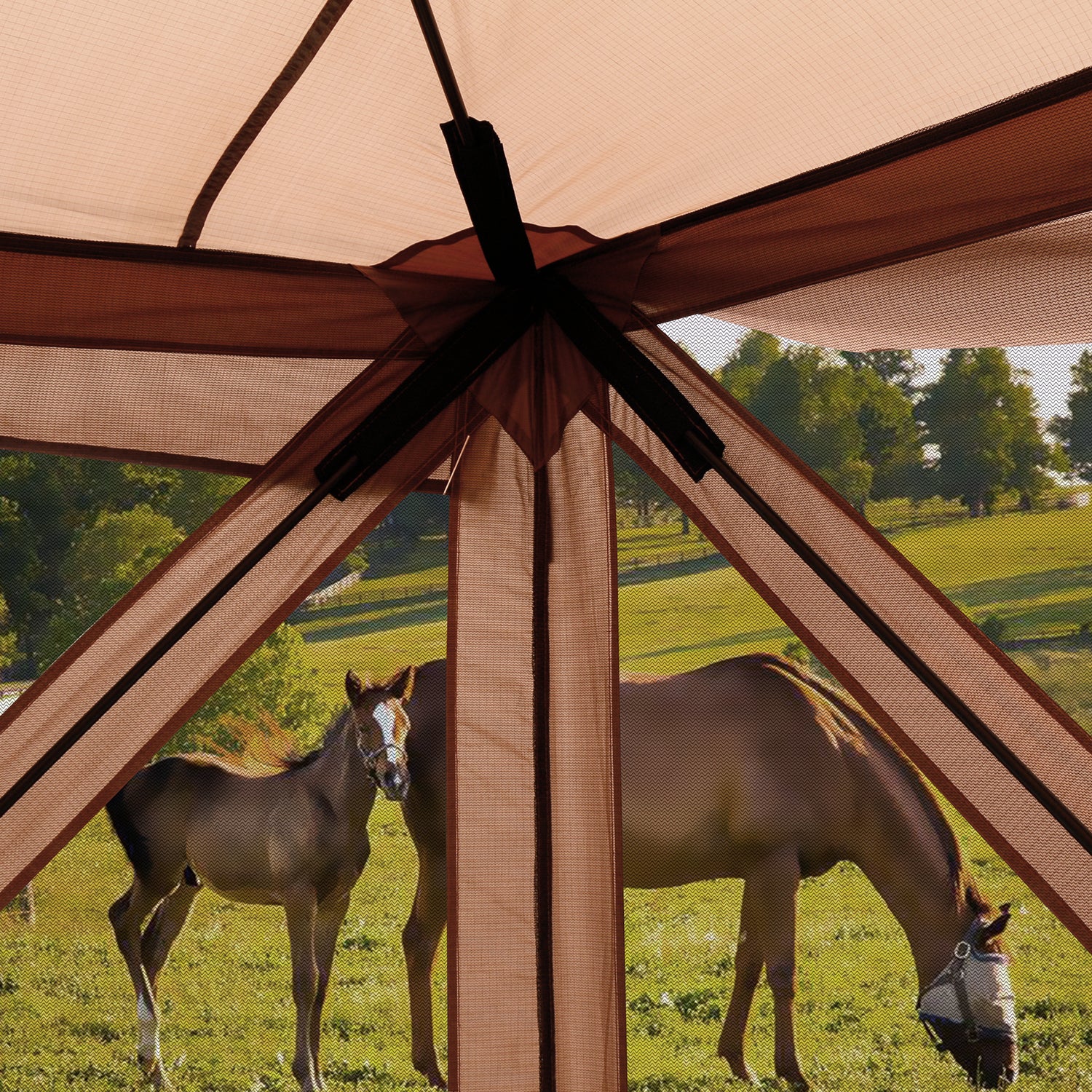 - [ Multiple Use ] Versatile popup gazebo. It’s an ideal companion for outdoor activities, a screen house for camping, backyard party, picnics, outdoor markets, dining, grilling, road trips, and sports event. Available on patio, deck, park, garden, lawn, or waterside.